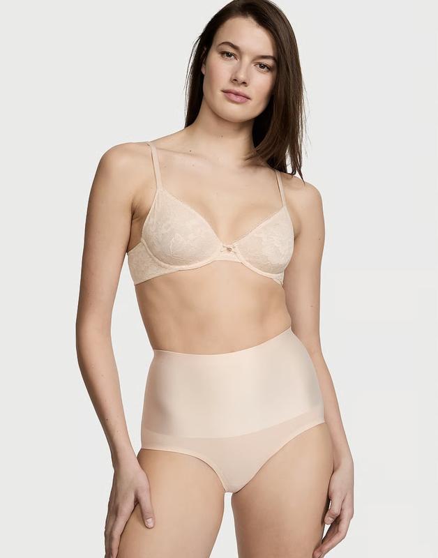 Комплект білизни VICTORIA'S SECRET, оригінал.Бюстгальтер з мʼякою чашкою розмір 34b (75b).Трусики завищені з утяжкою розмір S (на обʼєм стегон 90-96см).Колір - бежевий (Marzipan).