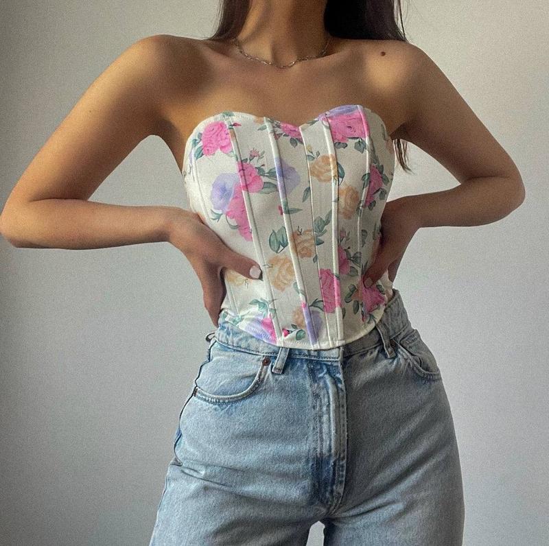 Топ-корсет с красивым цветочным принтом – вневременная классика 💓Косточки на лицевой части корсета • Размеры: 42-44 (ОГ 80-90 см)44-46 (ОГ 91-99 см)