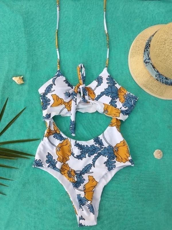 Primark слитный купальник в цветочный принт, купальник со шнуровкой