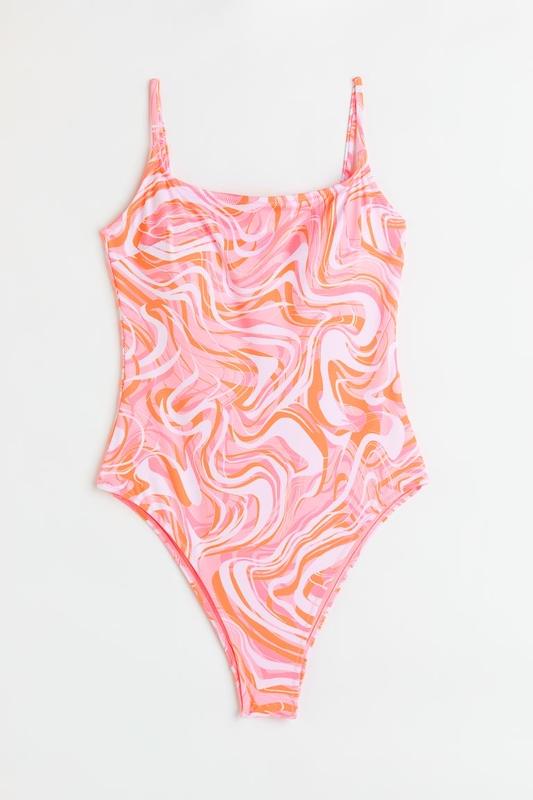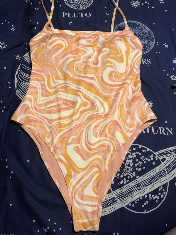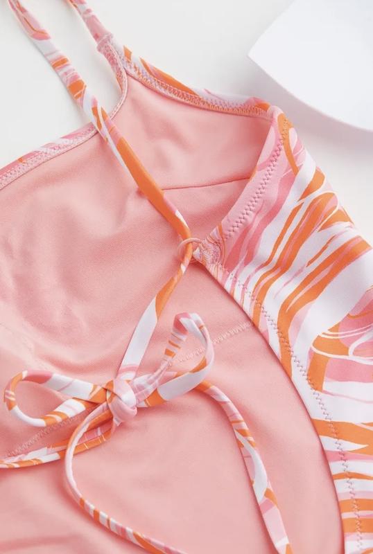 Купальник на полной подкладке с глубоким вырезом на спине, узкими бретелями, завязывающимися сзади, и чашечками со съемными вставками, которые моделируют бюст и обеспечивают хорошую поддержку. Высокие ноги и средний охват сзади.