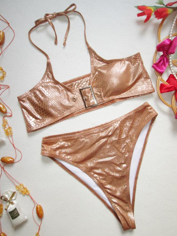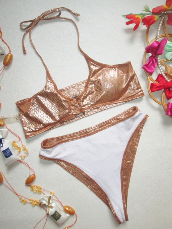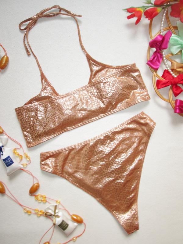 Мега шикарный раздельный бронзовый купальник в змеиный принт Shein 💜🍹💜