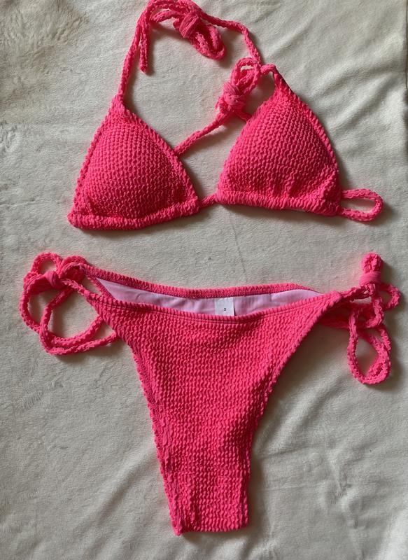 Новый чёрный купальник в рубчик раздельный с топом и завязками