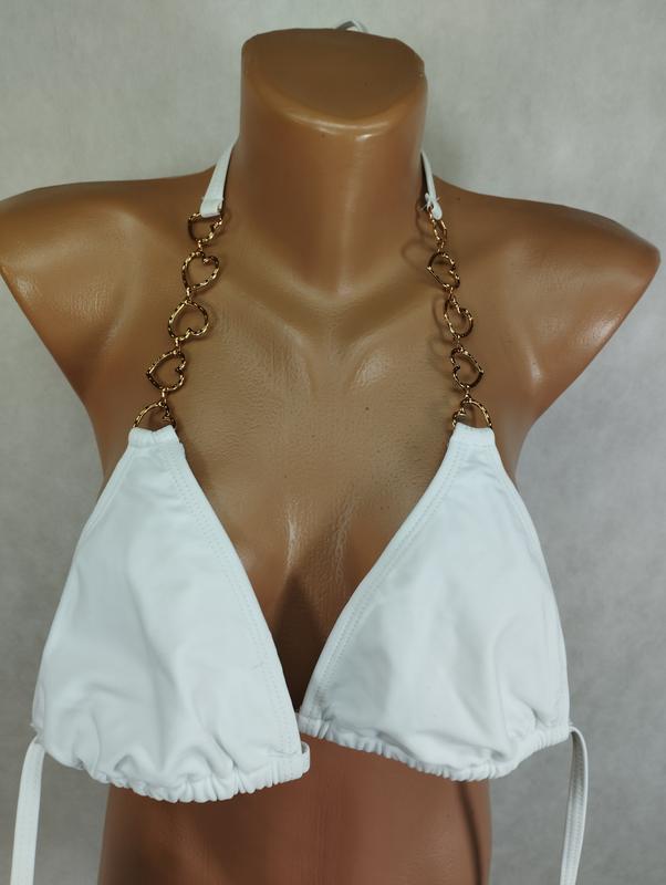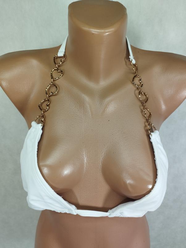 Белый лиф бикини купальник с металлическими сердечками на завязках