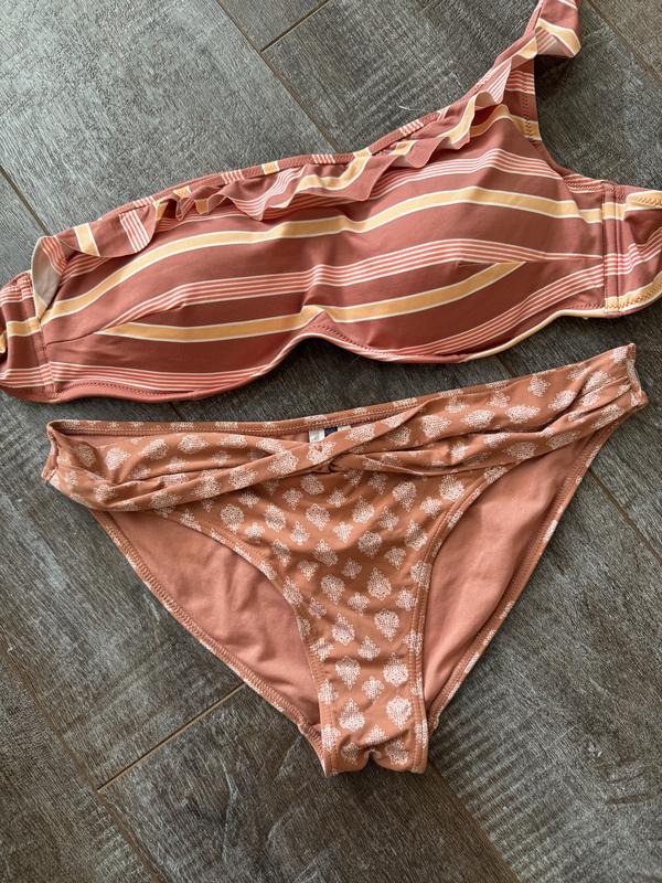 В идеальном состоянии Бюстгальтер, размер чашки D, замеры на фото, объем универсальный- завязываетсяТрусики L- замеры на фото