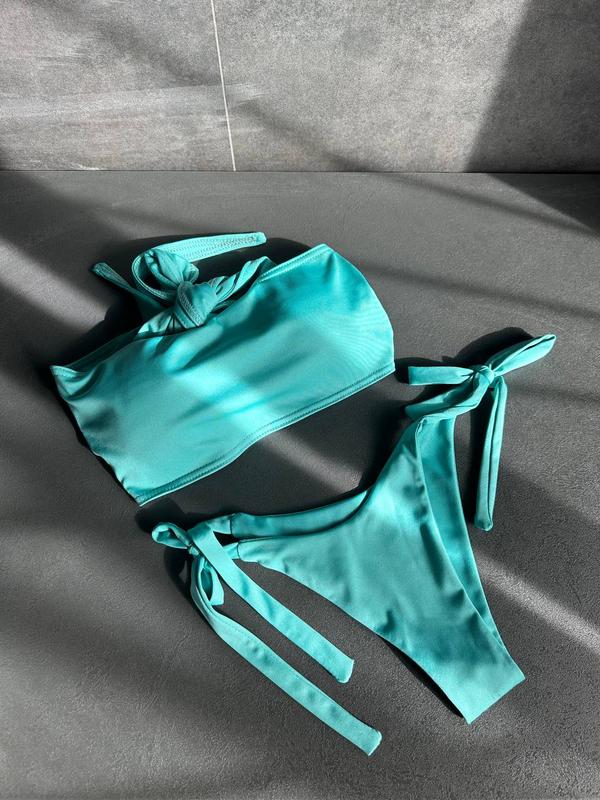 🛍 Купальник 📐 розмір Універсал 42-48 (регулюється) 🪡 тканина : біфлекс 🎨 кольори: чорний, мʼята, лео ▫️ Мод 3745 Ліф бандо на завʼязках з цільними чашками, чашки знімаються 😍 Трусики бразиліани на завʼязках завдяки чому можна регулювати посадку під будь-яку фігуру 👌 Ліф та трусики подвійні, тканина не просвічується👍