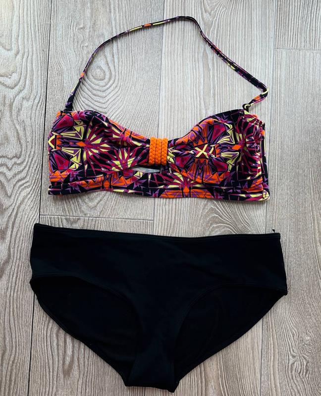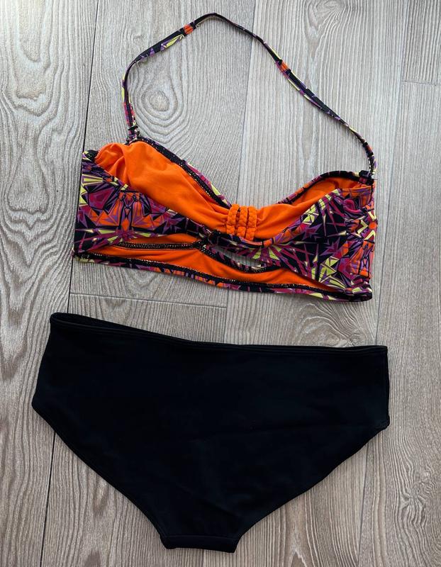 Купальник раздельный черно-оранжевый с вкраплением желтого и фиолетового TU🛍️❤️🔥