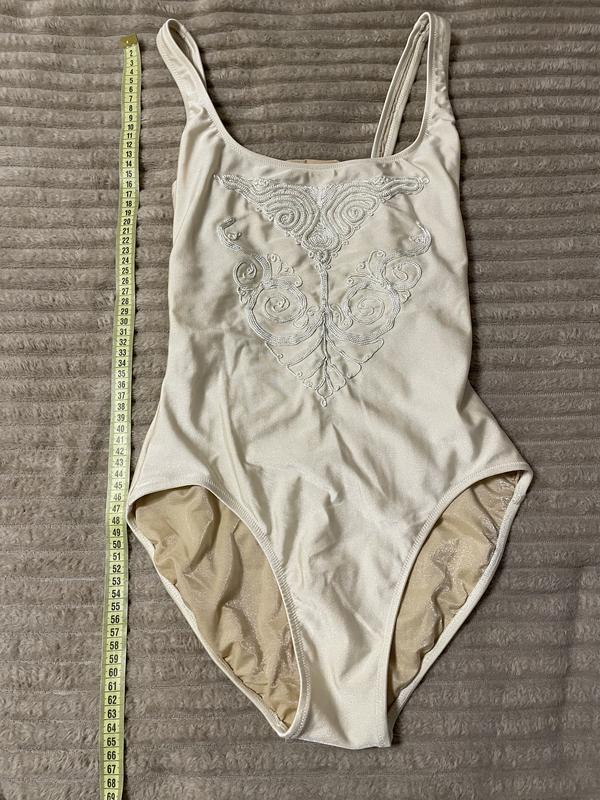 Купальник жіночий суцільний, б/в, оздоблений дуже гарною вишивкою, має щільний підклад по всьому купальнику, не прозорий і гарно тримає форму. Немає етикетки. Всі заміри у фото.