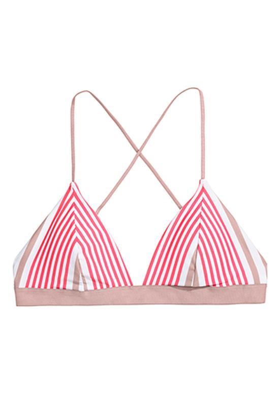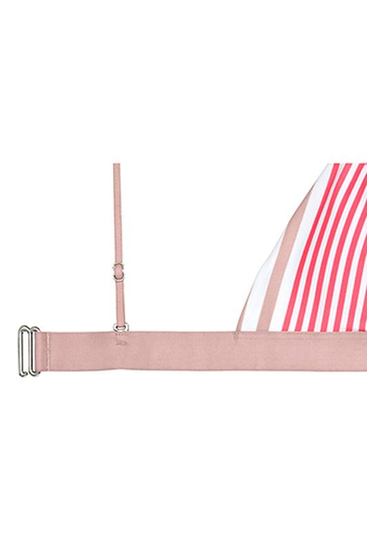 Лиф бикини на подкладке, чашечки треугольной формы, с вынимающимися вкладками; узкие регулируемые бретели, которые можно застегнуть на спине; резинка снизу с металлической застежкой сзади.