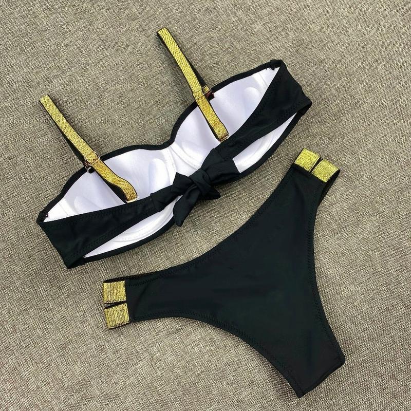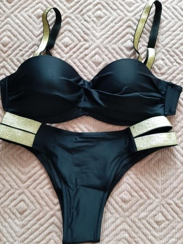 Интересная модель, которая удачно подчеркнет всю женственность Вашей фигуры. Чашка плотная, хорошо держит грудь. Есть пуш ап. Лямки съемные. Плавки на подкладке, с низкой посадкой, по бокам резинки.