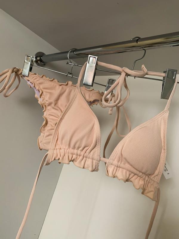 Код - 637✔️Трусики - бразильянки на завязках✔️Вверх - со съемными чашками✔️Размер - S, М✔️Цвет - бежевый✔️Смотрите другие мои объявления❤️