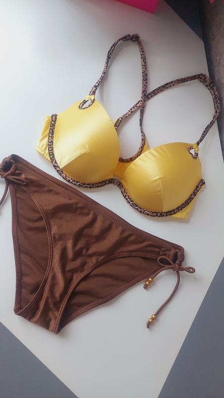 Купальник верх застёгивается спереди В отличном состоянии, на чашку В с пушап , на обьм 75 Низ на размер 44/46 без дефектов и нюансов!