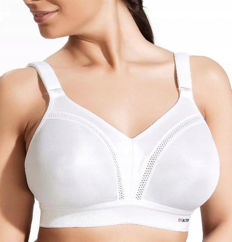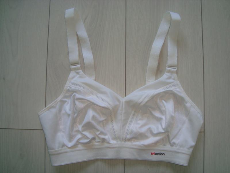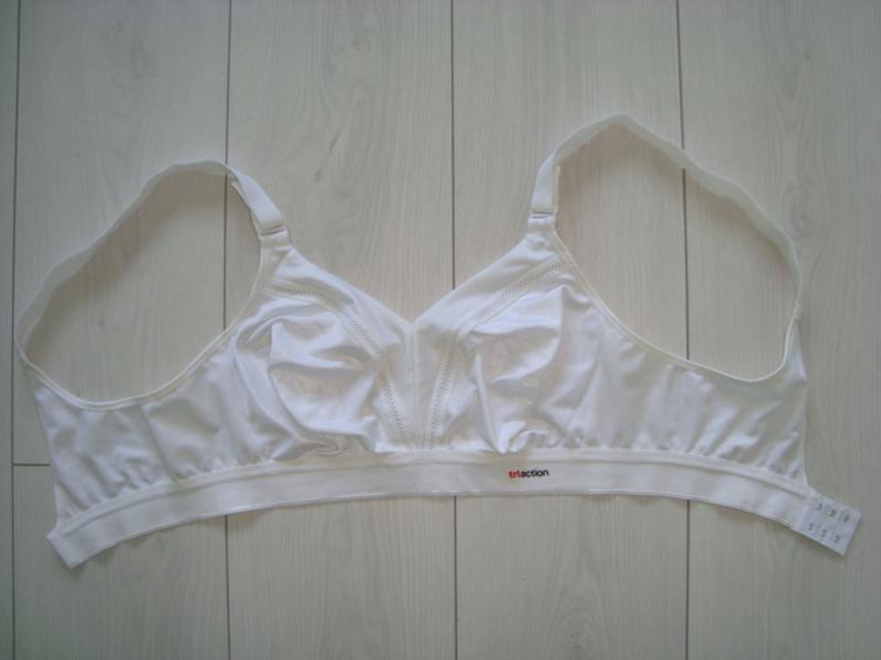 В наявності Triumph Triaction Workout N в білому кольорі. Широка стрічка під грудьми, регулювання верхніх ременів липучками (регулювання можливе по всій довжині). Уся довжина бюстгальтера-69см (відмінно тягнеться). Стан-бюстгальтер абсолютно новий, сток, без паперової бирки