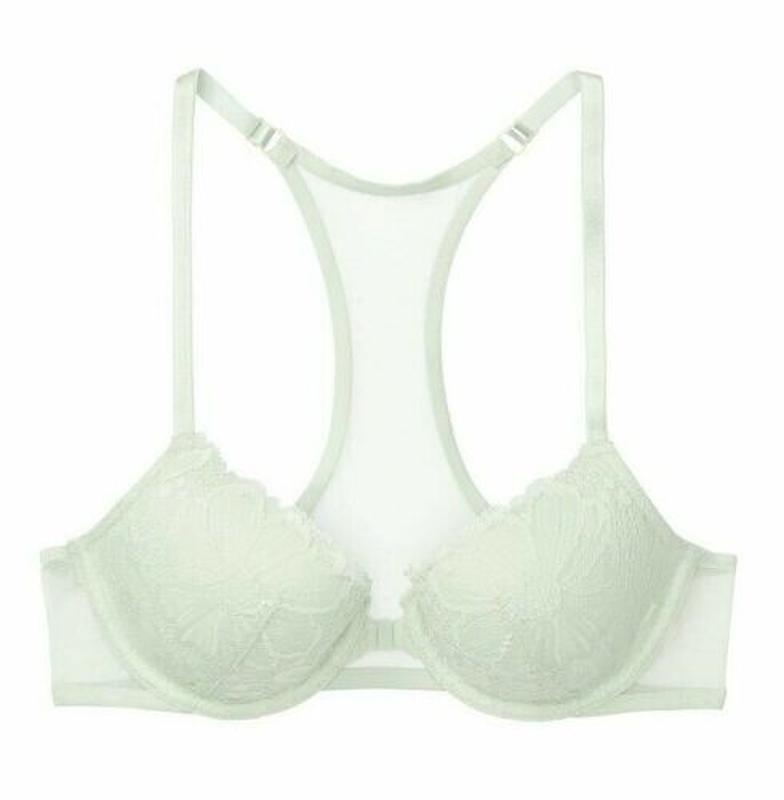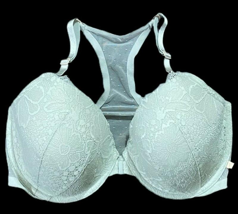 Сексуальный бюст Victoria's Secret с легкой подкладкой, кружевной бюстгальтер из демисезонной сетки, бледно-серо-зеленого цвета.Цветы спереди Горошек сзади