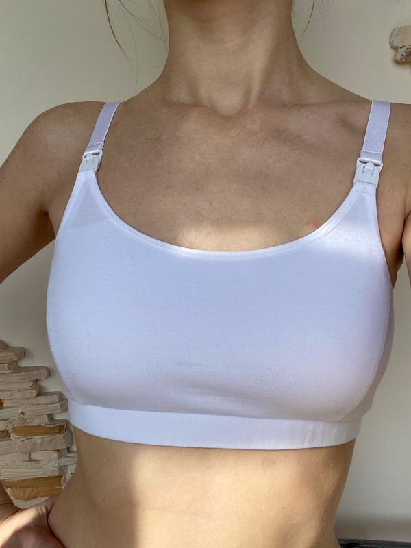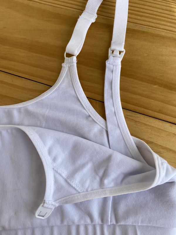 Удобный топ для кормящих мам от Holy mamas. Без лишних застежек, с фурнитуры только клипса для кормления и регуляторы на бретелях. Подходит для сна. Надевается через голову. Резинка под грудью широкая хорошо держит. Можно вставлять чашки. Спинка высокая, еще старая модель.