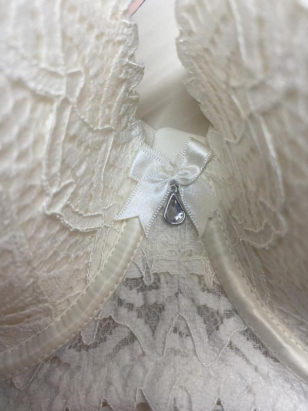 Он просто шикарный!Брала себя на эфире в Тик-Токе, но прогадала с размером.Форма балконет,на тонком поролоне и косточках.Межило просто красивое, материалы и пошил качественный.Брителлы до половины атласные.Е небольшой нюанс,снички на косточках словно пожелтение, но я и брала с таким нюансом.Не стирала, потому что не хочу отрывать берку.Размер указан 36 ДД.Подет на полную Д,и до 85 объема будет.