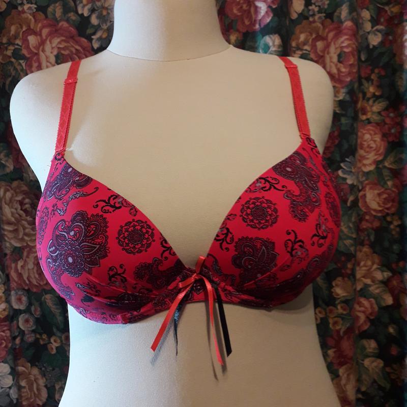 Шикарный, ажурный, бюстгальтер, красного цвета, с черным, ажуром, от бренда: new look 🌹