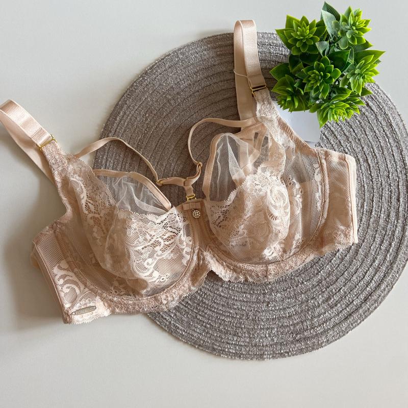 Мягкие чашки без поролона на лодыжке. Выполнены из прозрачной микросетки, покрытой цветочным кружевом. Имеет средние и уплотненные бретели, которые обеспечивают идеальную форму и фиксацию груди.