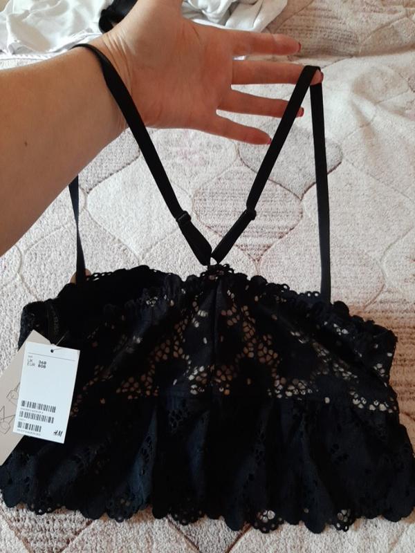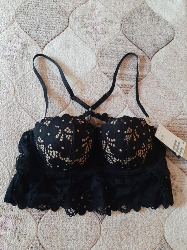 абсолютно новая вещь. Размер соответствует тому, что указан на этикетке. Чашка формованная на тонком паролоне, без пуш-ап. Застежки нет.