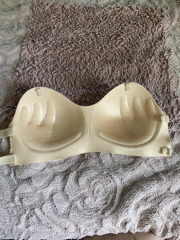 Бюстгальтер бандо, хорошо держится без бретелей При необходимости можно прицепить бретели (в наборе нет) Присутствующий небольшой пуш-ап Состояние новое Размер универсальная чашка А-В обхват от 60 до 75
