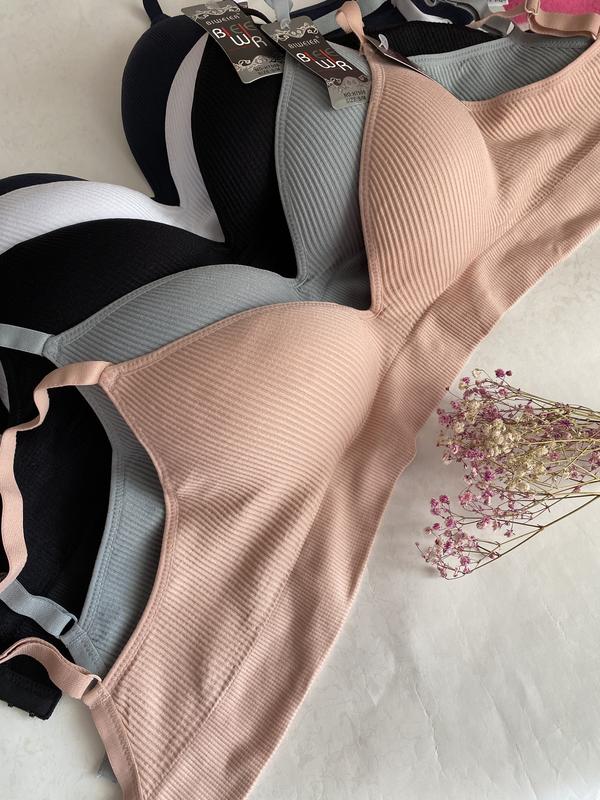 Бюстгальтер-топ в рубчик с застежкой на 3 крючка.Бретели регулируются.Чашка з push up.Пудра, темно-синий s-mСерый s-mЧерный, белый s-m, l-xl.S-m на объем 70ВС, 75ВСL-XL на объем 80ВС, 85В.