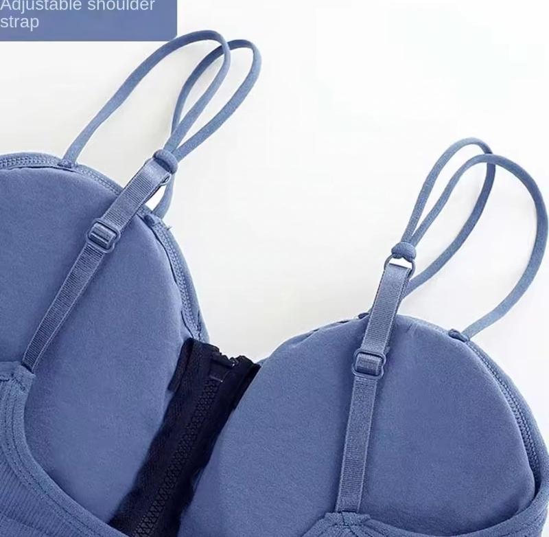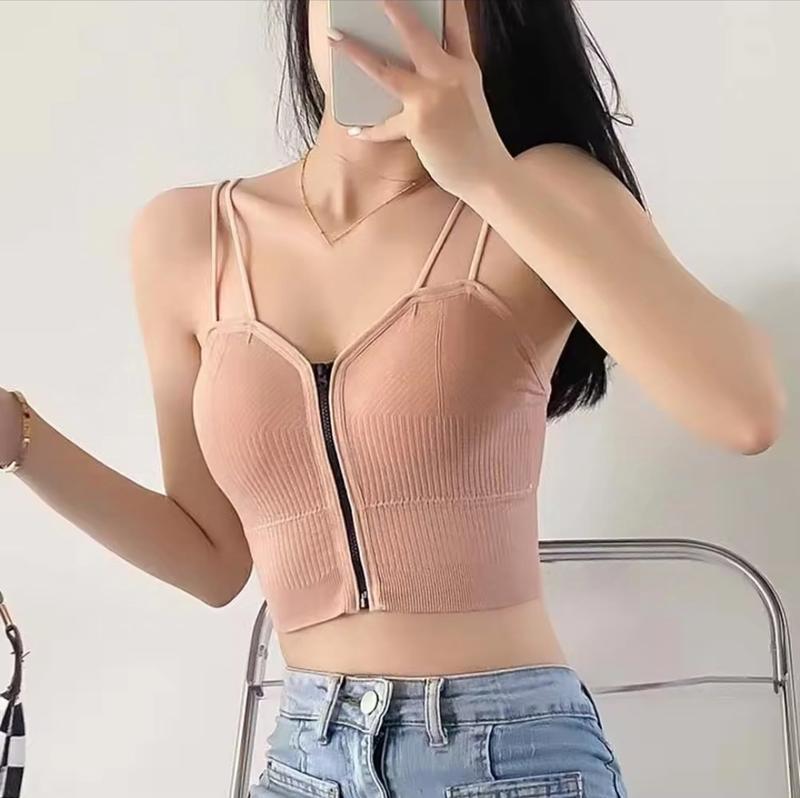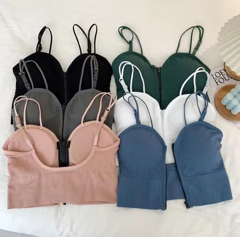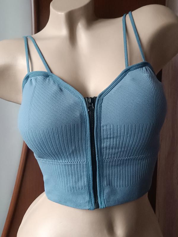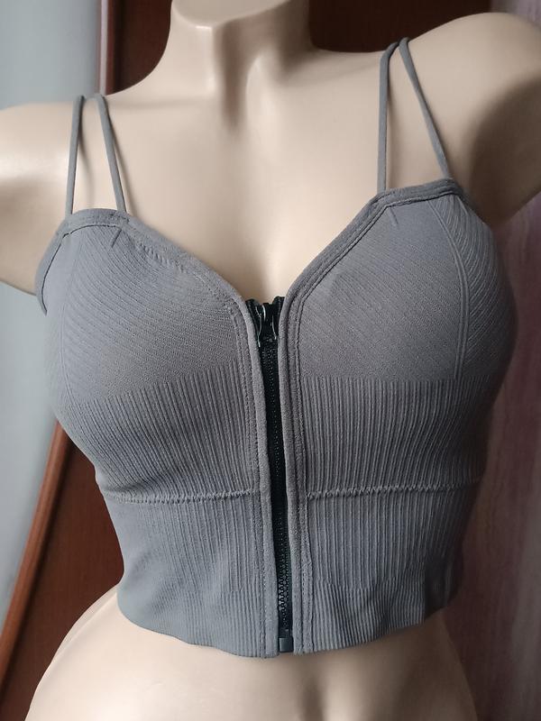 Женский топ на молнии с широкой резинкой, и поролоновыми съемными чашками.