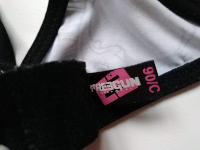 На бретелях выбита надпись бренда freegun. Видно под определенным углом.