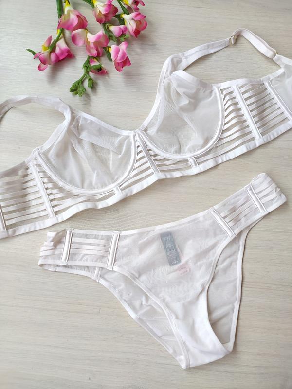 Минималистичный и современный, из прозрачной сетки с гладким глубоким вырезом без подкладки.✔️Размер лифа 36D/80D✔️Трусики L