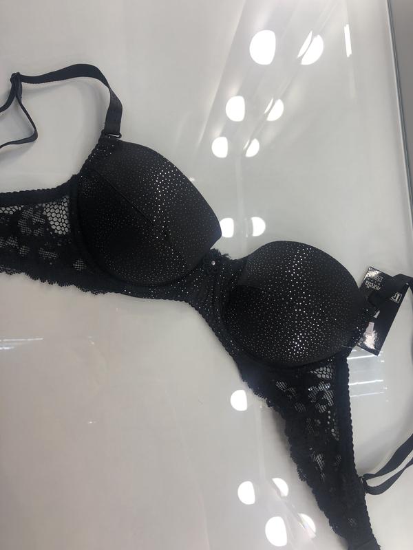 Бюстгальтер верх микрофибра и кружево, чашки внутри хлопковые, со съёмными вкладышами. Бретели съёмные.