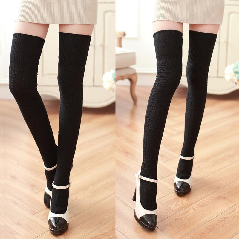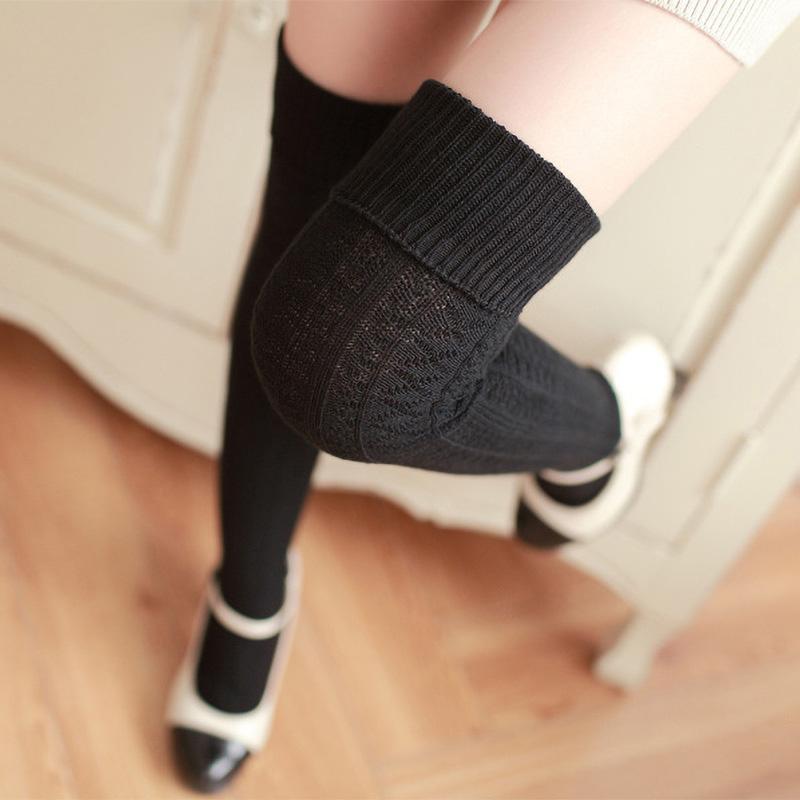 Текстурные гольфы выше колен с манжетой.