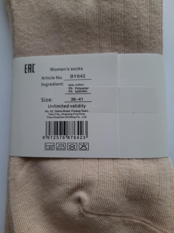 Состав: 90% - Хлопок, 5% - Полиэстер, 5% - СпандексРазмер: 36-41Цвет: как на фото
