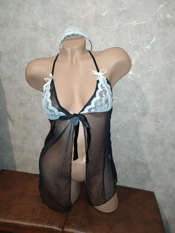 секси пеньюар на завязках и чепчик на обруче. Размер S-M