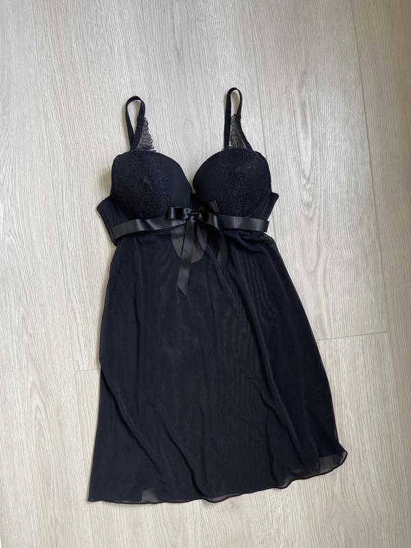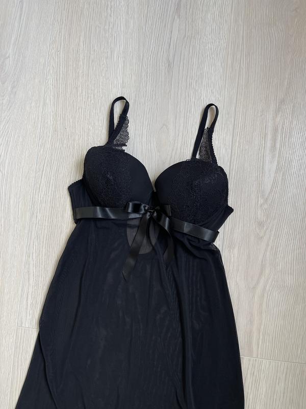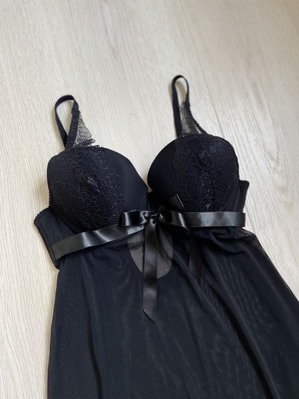 Черная ночная рубашка пеньюар размера 75В от Censored, в идеальном состоянии, без дефектов и затяжекСостав:86% полиамид 14% эластан