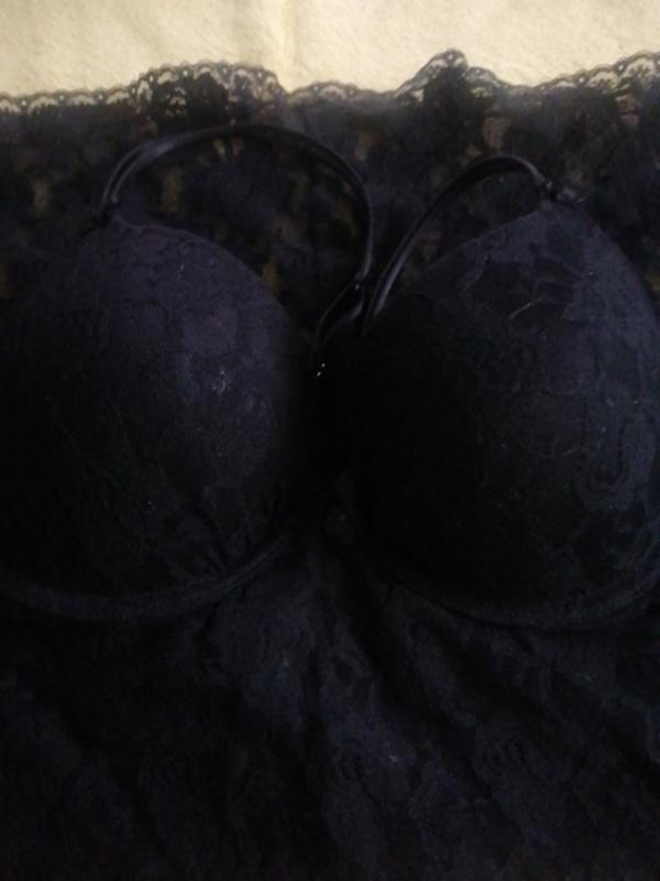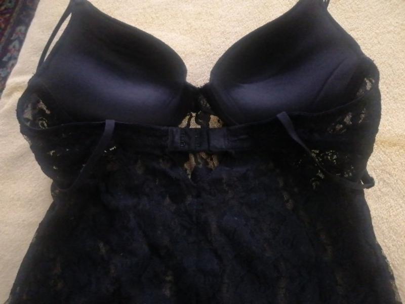 Сексуальный женский пенюар черного цвета, бирка срезана, состояние новый, ПОГ 35-38,чашка В с пуш-ап, застегивается на два крючка. Высота боковых швов 54 см, высота от чашки бюстика 64 см, бретели регулируются.