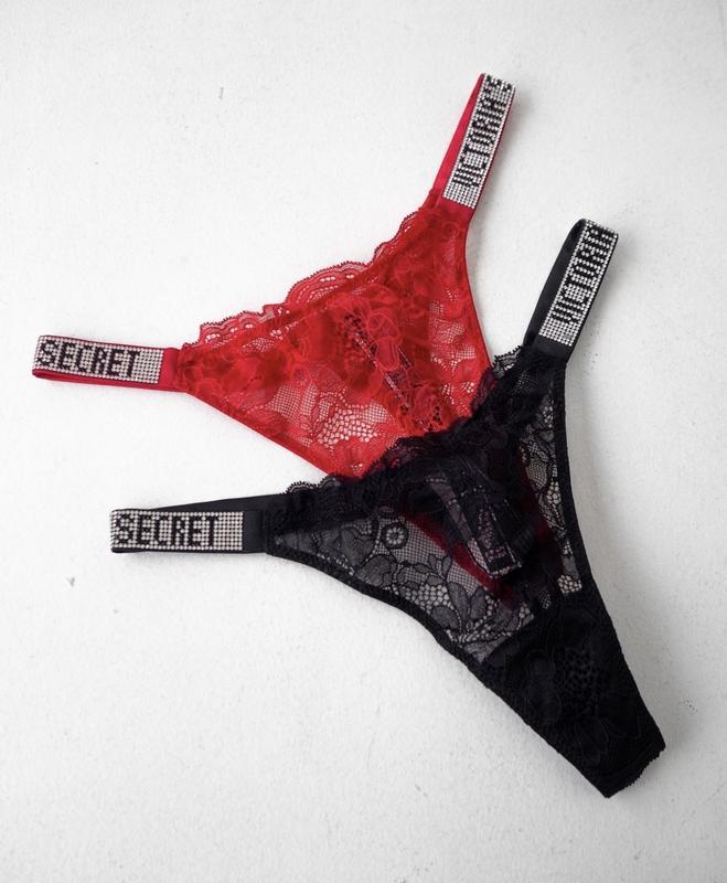 В наявності білизна від VS із колекції very sexy з камінчиками. Кольори: чорний, червоний, рожевий (варіація камінчиків представлена в крайніх фото)