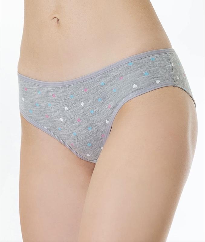 эластана . Модель - бразилиана средней посадки с принтом - сердечки .