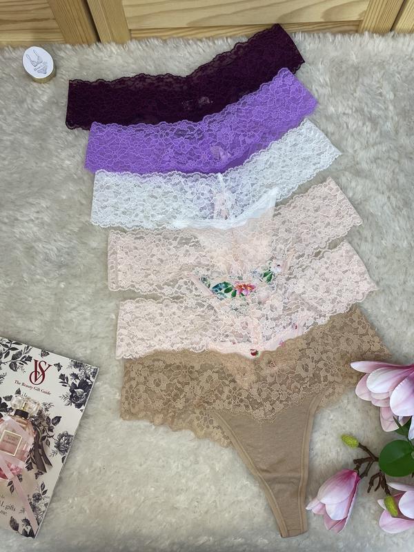Набор трусики victoria's secret стринги хб с кружевным поясом xs s l xl виктория сикрет