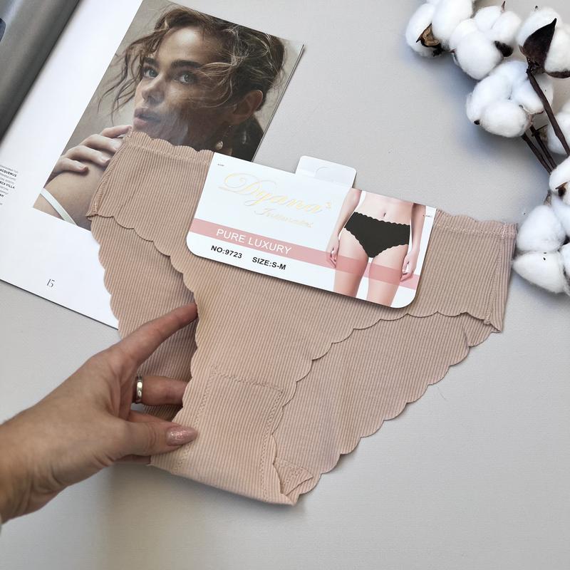 Бесшовные трусики слипы в милый рубчик на среднюю посадку с волнистыми краями🕊