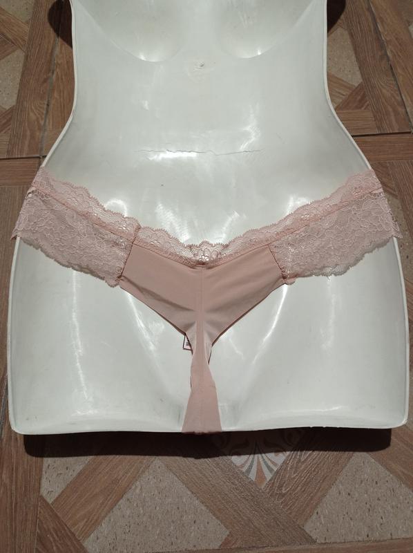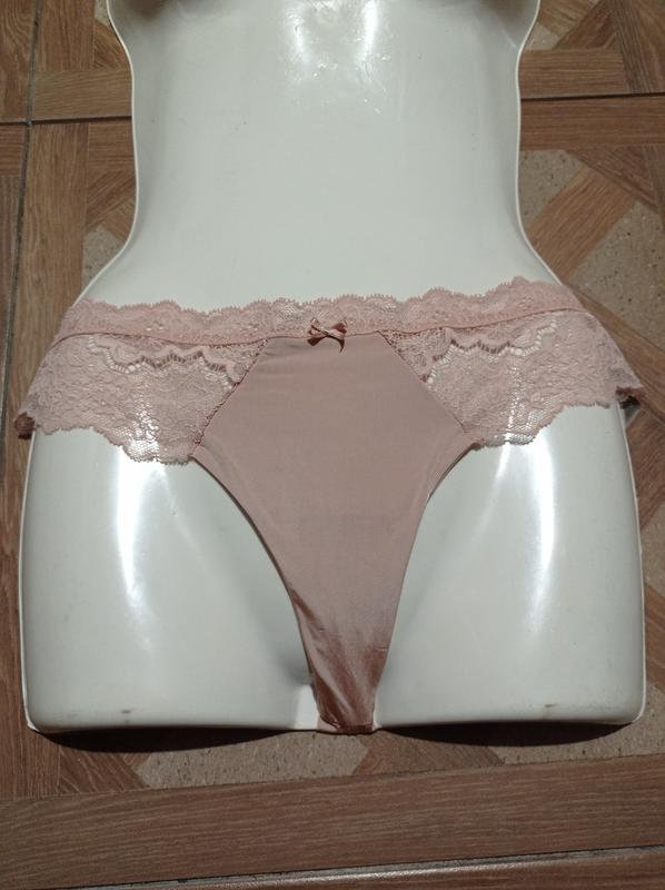 Замеры: ПОТ-34длина сбоку -7высота спереди -20Модель стринги. Тканина нейлон. В качестве декора - кружево спереди и бантик. Е2 микро затяжки спереди снизу на фото указано. Резинка в талии отсутствует, там есть шов, но он не тугой, нежный.