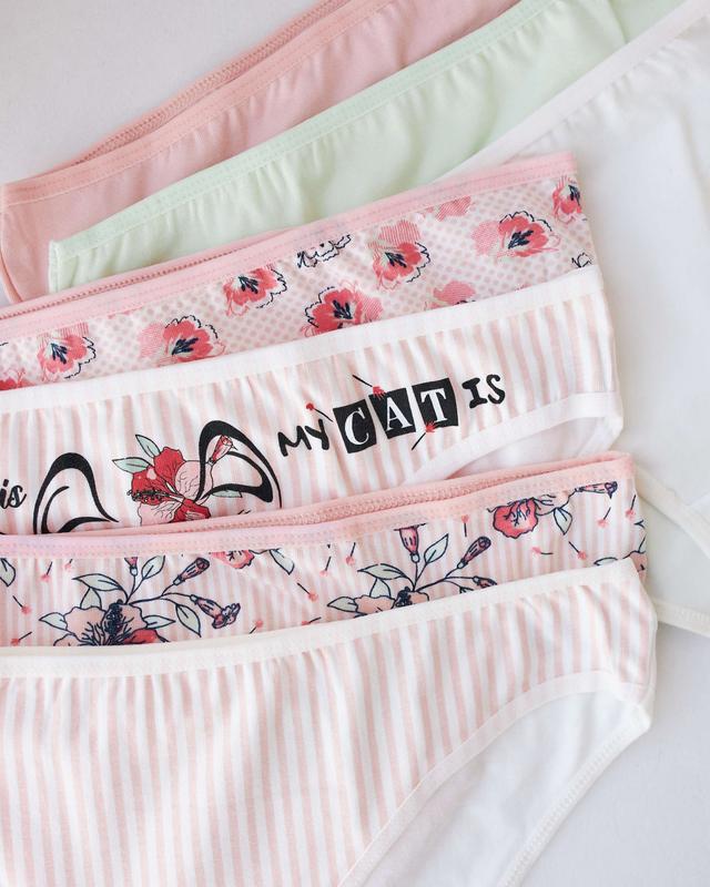 В упаковке 7 трусиков одного размера, но разных цветов (см. фото).