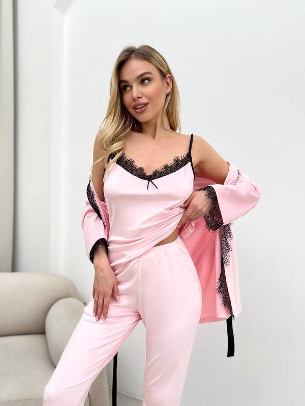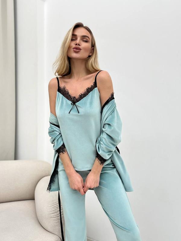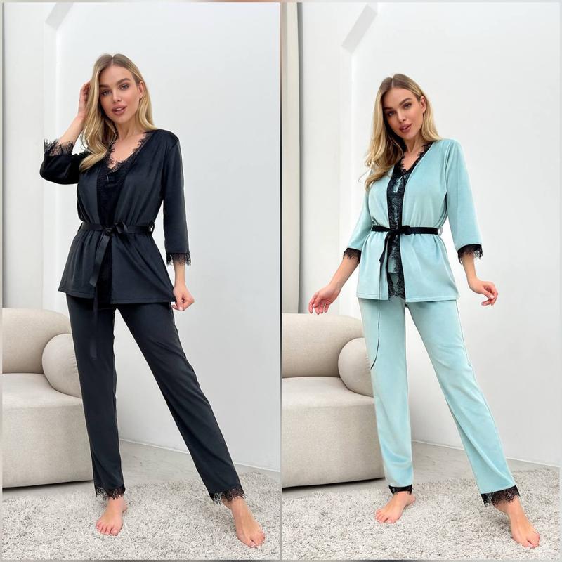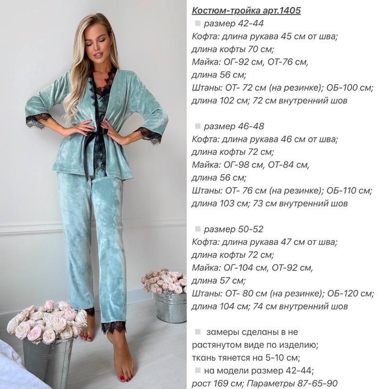 💕В НАЯВНОСТІ💕Комплект-тройка Материал: трикотаж велюрРазмеры: 42-44; 46-48; 50-52Цвета: розовый, белый, черный, мята, графит, лаванда