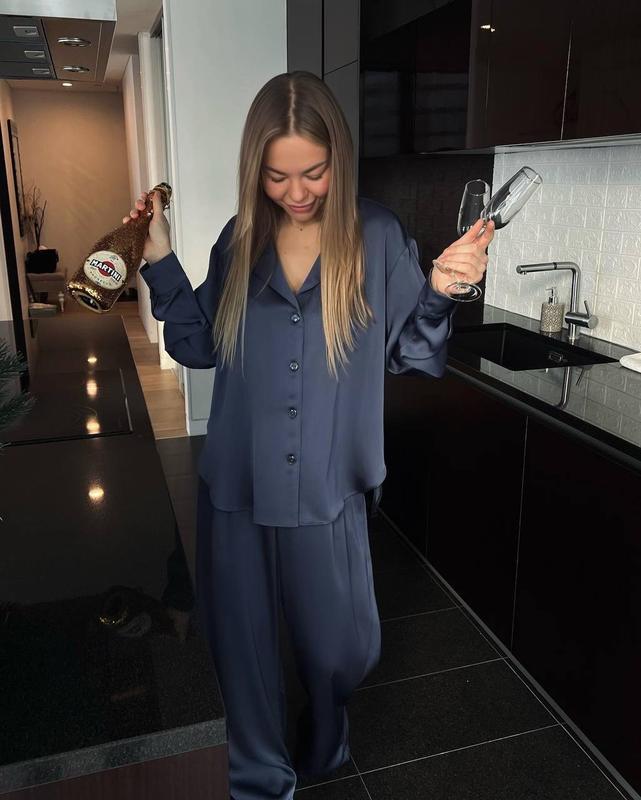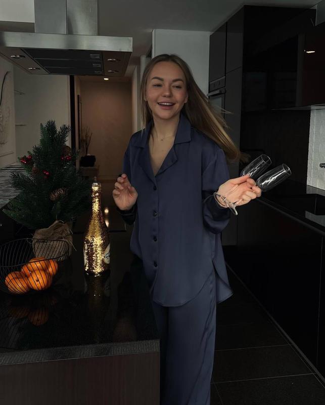 Хит сезона🎄🎄🎄Домашний костюм🤍☑️Ткань: Армани шелк☑️Цвета: темно синий ☑️Размеры: 42-44; 46-48