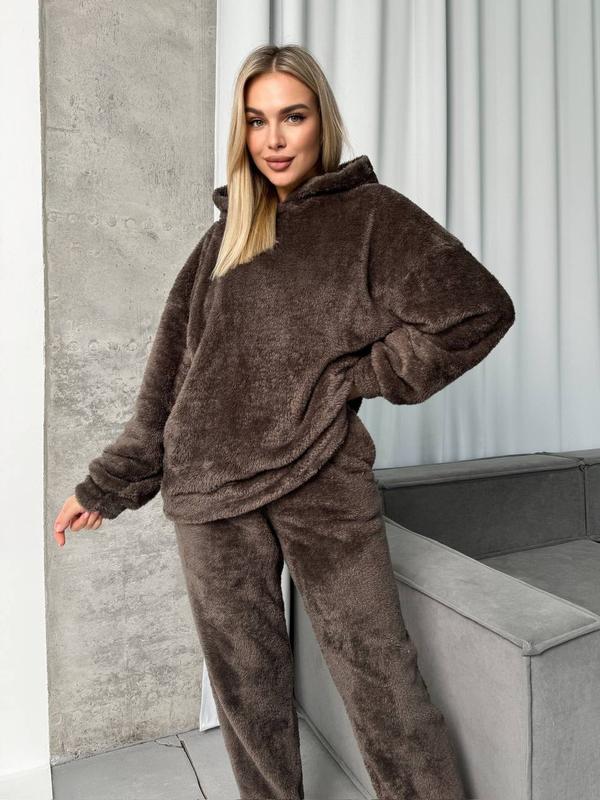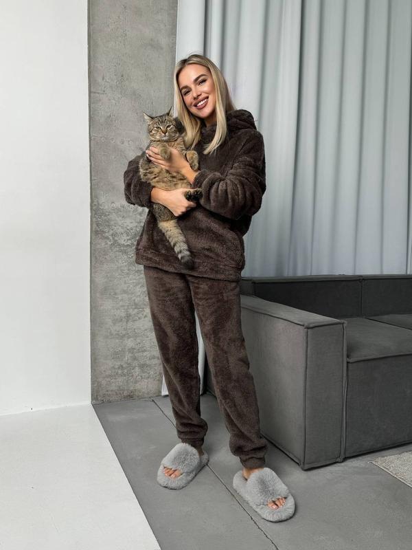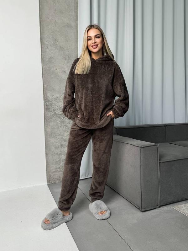 Домашний костюм/ пижамаТкань:двусторонняя махра (очень мягкая и теплая)Размеры:42-44,46-48🌈Кольори: бежевый, мокко