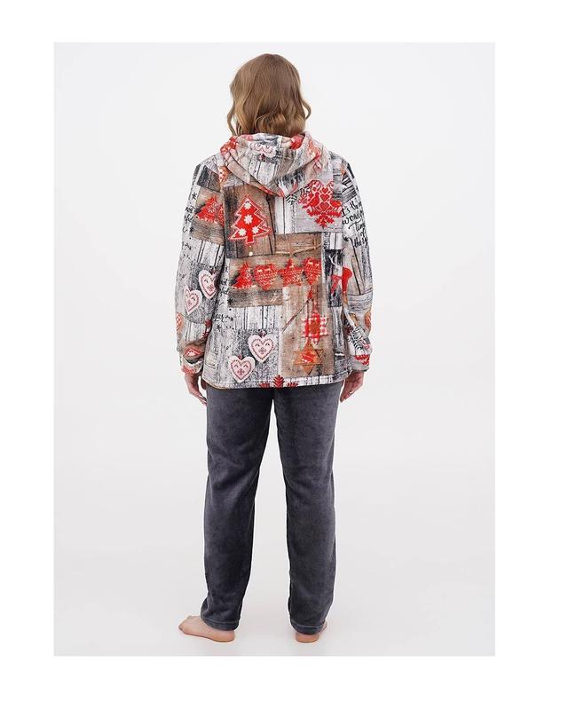 Женский теплый махровый домашний костюм с капюшоном пижама с капишоном, брюки с манжетами резинками, а кофта рукав на манжете из основного полотна