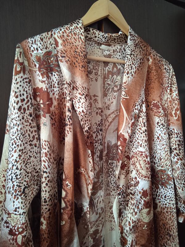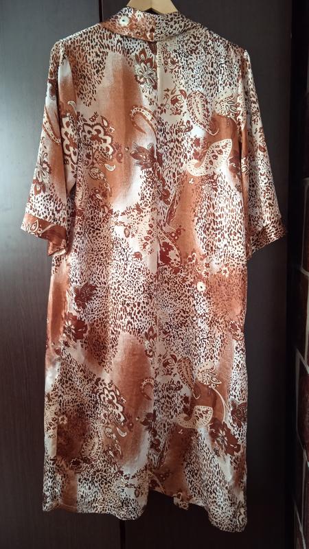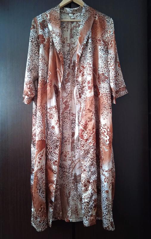 от ведущего украинского производителя Ярослава, специализация - домашний текстиль.Без нюансов, состояние нового. пог 56, длина 115, рукав 3/4, на запАх, ширина регулируется внутренними и внешними веревками