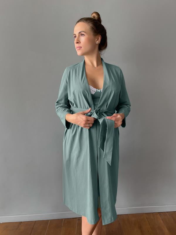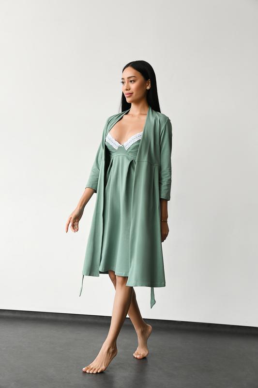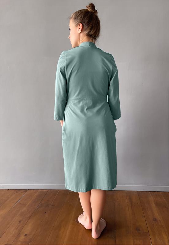 • халат для беременных и кормящих мам на запах с широким втачным поясом из хлопкового трикотажа