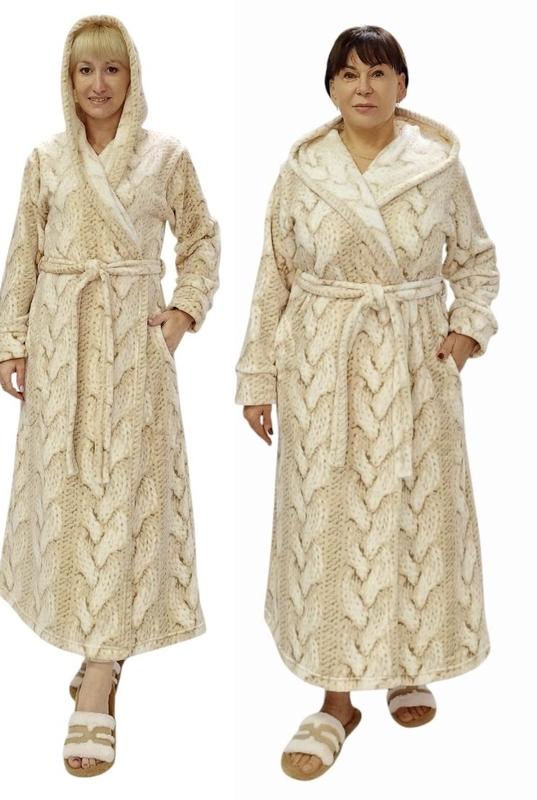 Качественный, теплый длинный женский халат с капишоном, на запах с двумя карманами, пояс в петлях, в капюшоне функциональная петля, рукава на манжете из основной ткани, который можно удобно подвернуть Материал махра велсофт двусторонняя, пушистая усреднённая и гладкий полированный ворс снаружи Размеры: 48,50,52,54,56,58 - 1110 грн