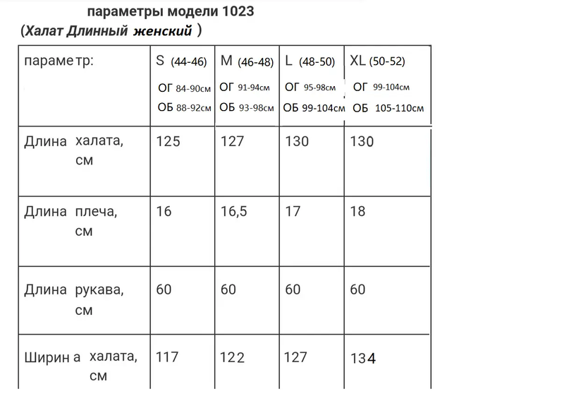 Длина халата в размере S около 125см, в размере XL примерно 130см