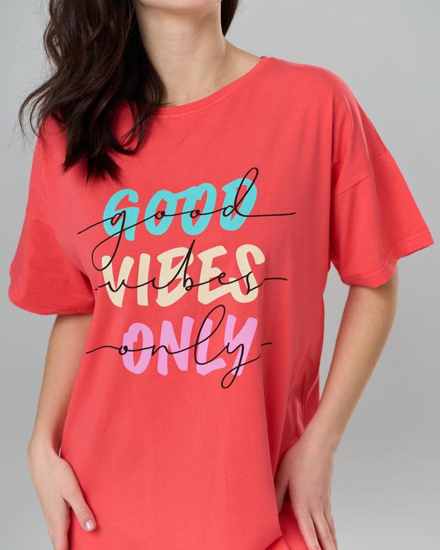Туника женская с рукавами 83638 - Good vibes only. В состав изделия входят 95%