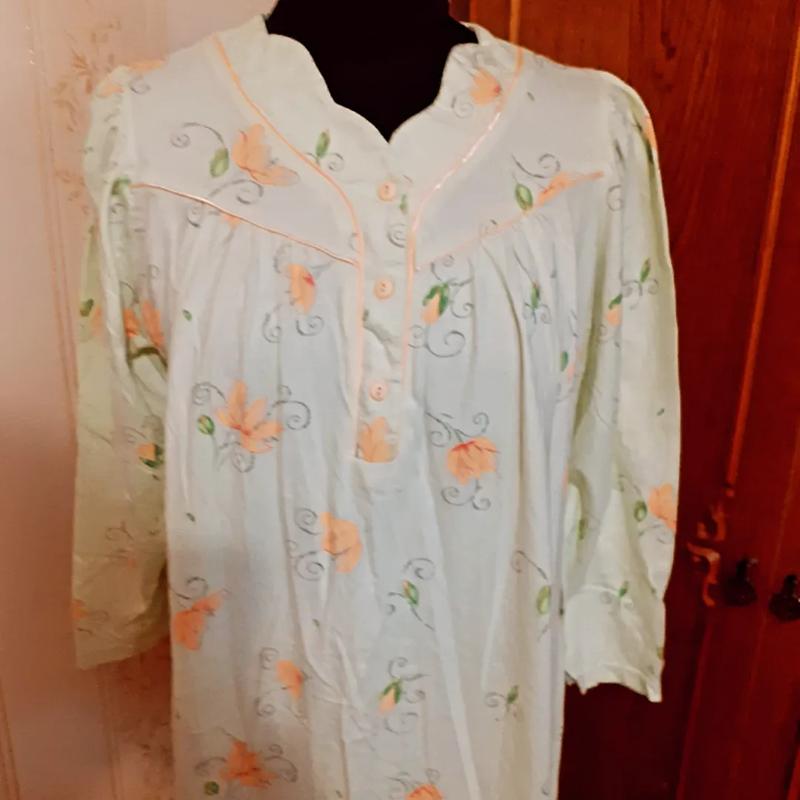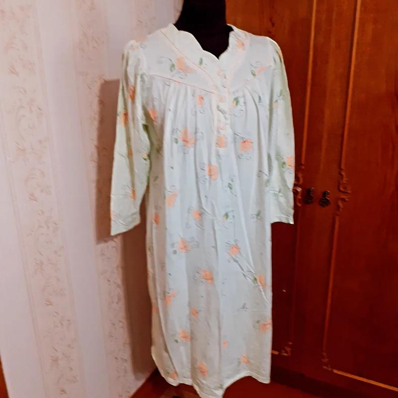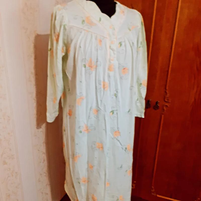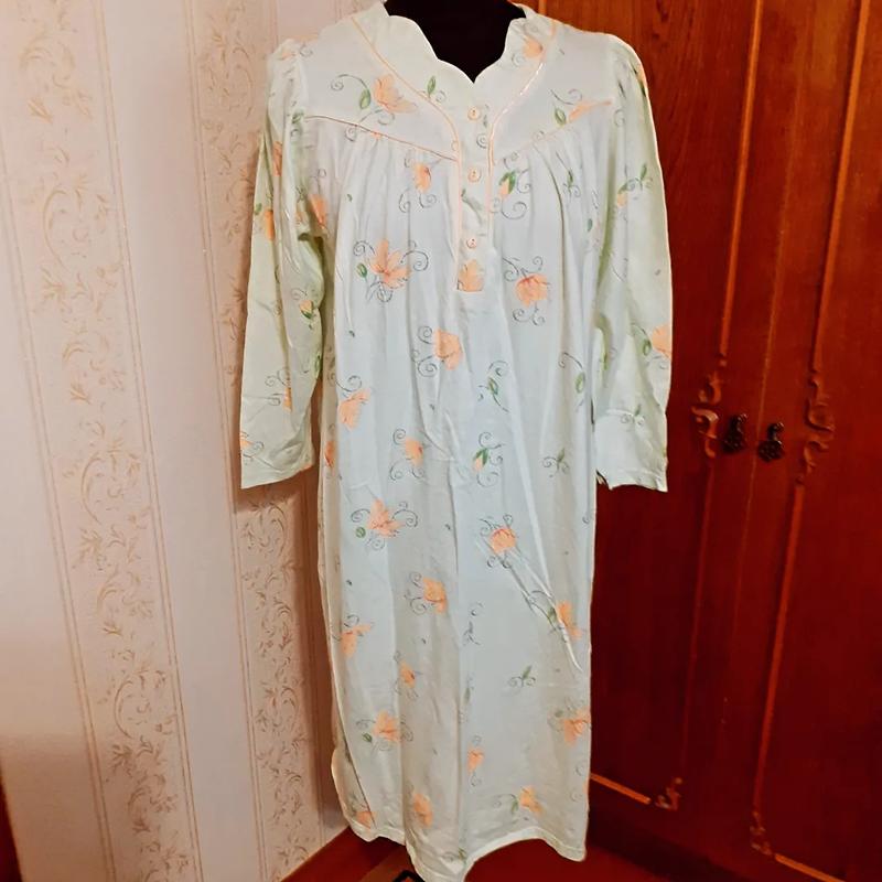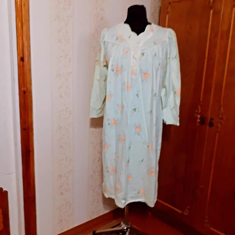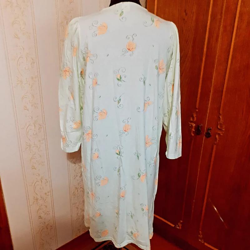 Натуральный катон на планочке с пуговками с выстрочкой атласной лэнты в нежно салатовом цвете с принтом цветов Рекомендую!Дл.98 Пл.34 Р 53 Б по 22 Ог 100-110 Об 120-126