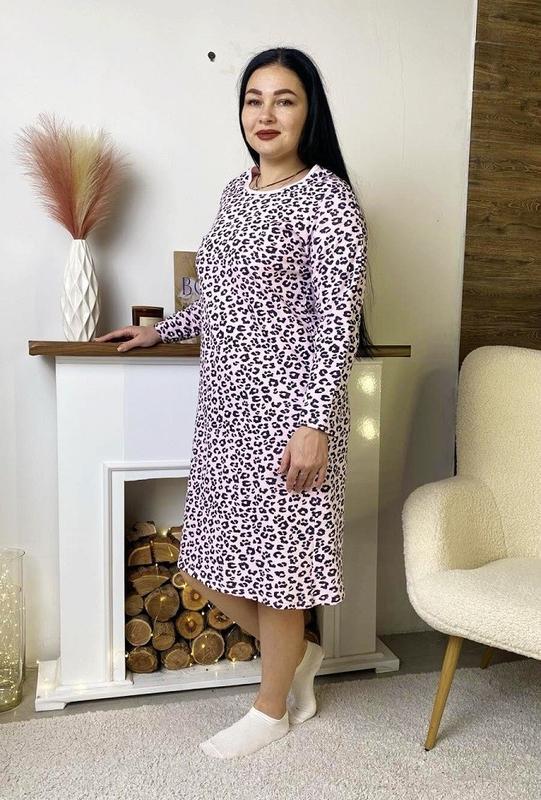 Ночная рубашка женская леопардовая теплая начос батальная розавая р.52-60